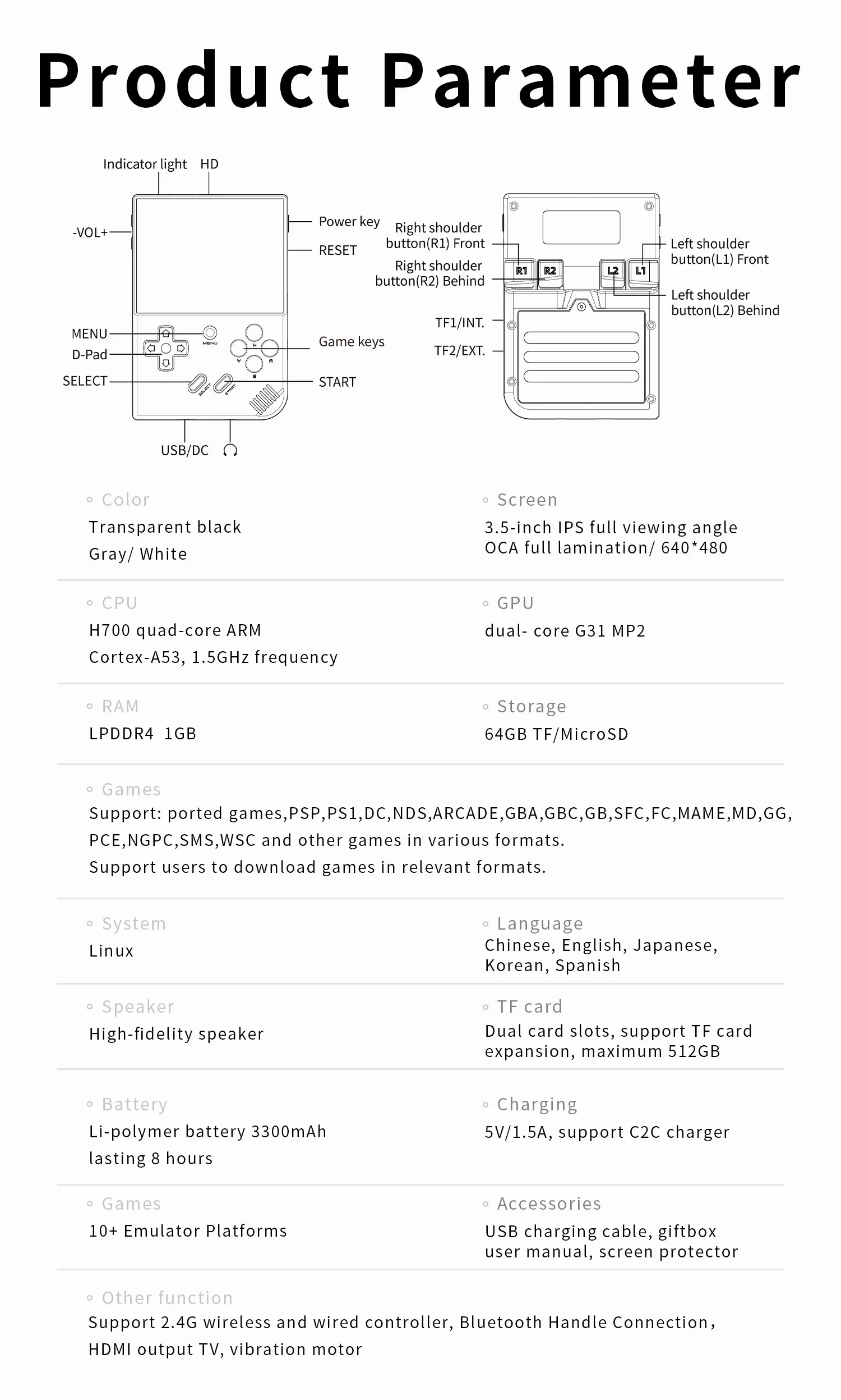 • Smooth Emulation: Powered by an H700 quad-core ARM Cortex-A53 1.5GHz CPU and G31 MP2 GPU.